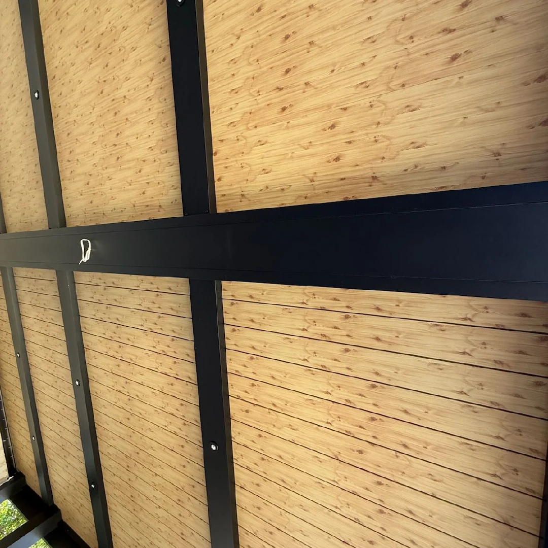 This profile is ideal for exterior cladding. It is wider than other profiles and recommended for covering larger and more massive exterior surfaces. It is highly recommended for ceilings and large buildings because of its wider size, which allows for a more sealed and private environment. It comes in different shades of wood and other colors or can be painted in a custom color. The installation is effortless, and the finishing looks seamless without any noticeable screws or marks.
